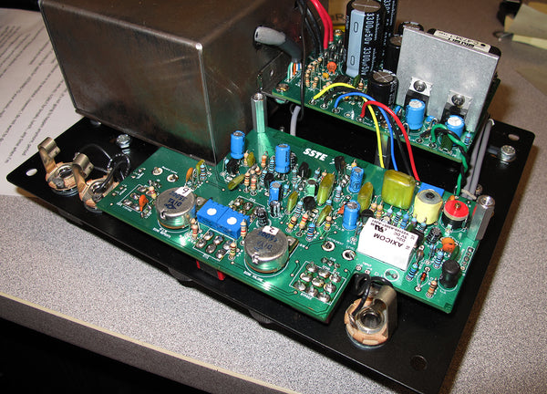 All SSTEs serial# 388 and higher (that includes any one bought new) have a small toggle switch allowing you to choose between "Buffered" or "Bypassed" output. Why? An SSTE without its output buffer is very much an early EP-3 Echoplex circuit, and EP-3s have a pair of Mix potentiometers on their output that give them a very unhealthily high output impedance, degrading the instrument's treble and the the brightness of the repeats! BUT, some people like this effect, and I've had people ask me "Can you make yours sound more like an EP-3?" Lol, so the EP-3's sonic degradation is an "asset" to some people, and I get that. I like the sound of an SSTE with the buffer turned off...sometimes, so now all SSTEs have this "Buf/Byp" switch, and we can modify your SSTE to have it as well.